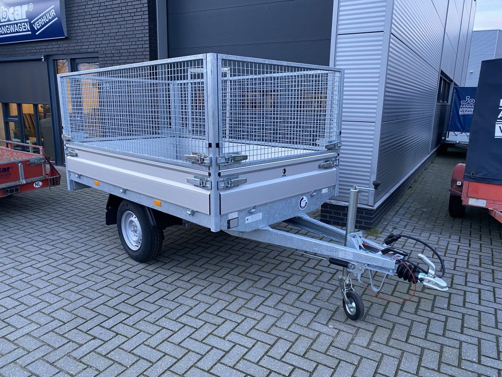 - Groot laadvolume (4,1 m³) en hoge zijkanten dankzij loofrekken — ideaal voor grofvuil, puin en groenafval.